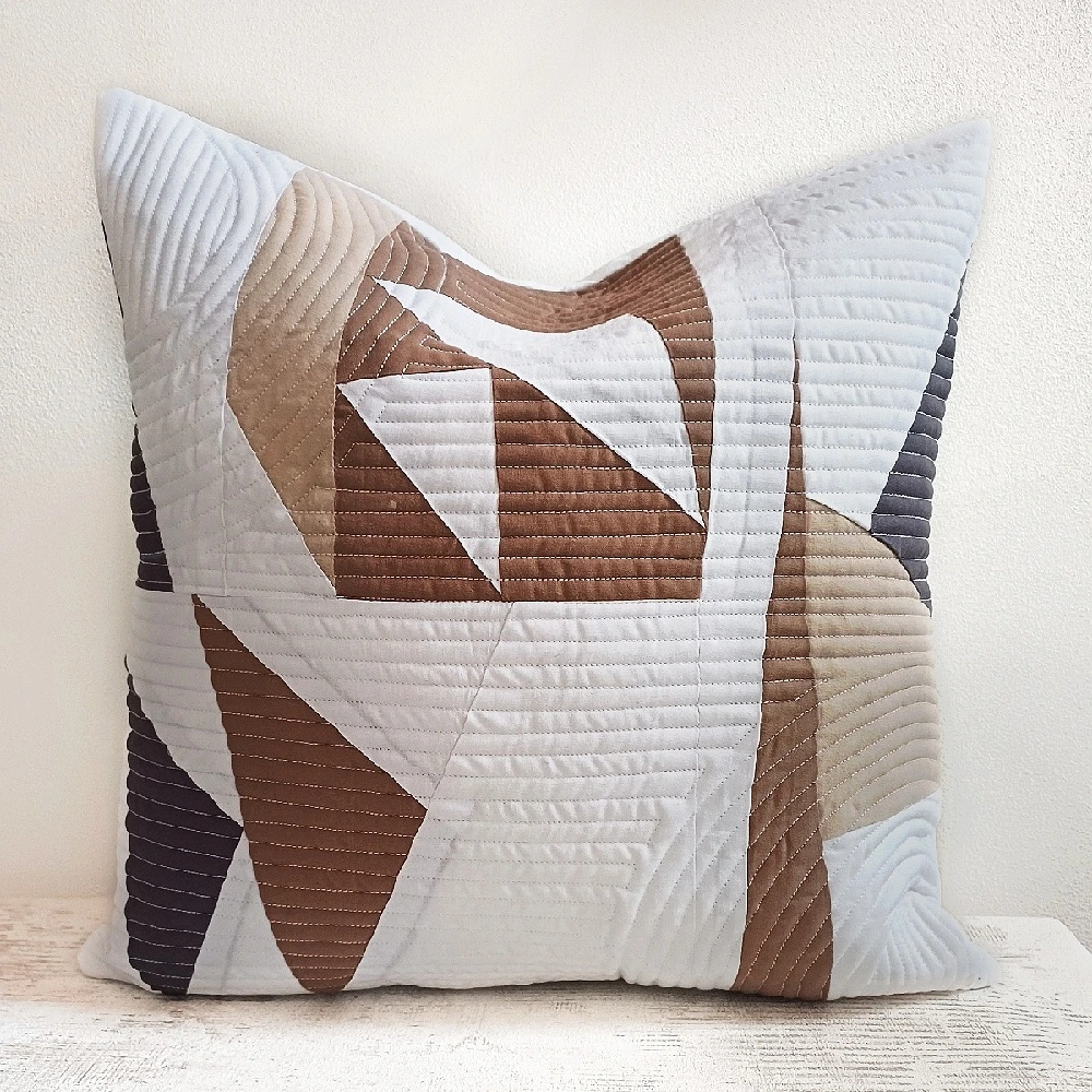 Tento jedinečný design vzniká technikou šití na papír, která umožňuje vytvářet dokonale přesné geometrické tvary a čisté linie. Jemná kombinace bílého pozadí a hřejivých zemitých tónů působí elegantně, nadčasově a přirozeně zapadne do každého moderního interiéru.