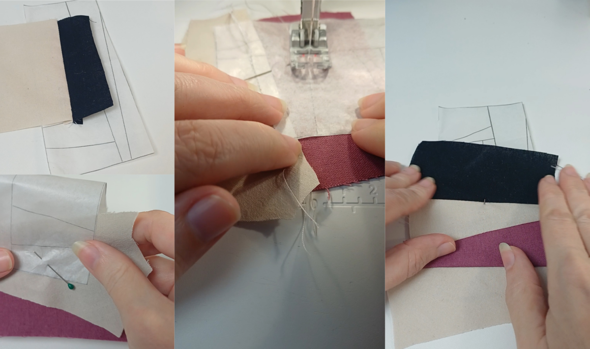 Tenhle miniblok je trochu jiný i v samotném postupu šití. Začíná se od prostřední části. Právě tam totiž švy začínají – ale zároveň i končí. Nemají návaznost. Ta vzniká až postupně, jak přidáváš další části a celý blok se začne skládat dohromady.